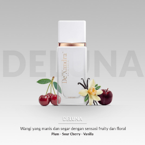 Parfum wanita dengan sensasi wangi fruity dan floral yang manis dan segar. Membuat penggunanya anggun dan memikat. Deluna cocok untuk karakter wanita yang elegan dan misterius.